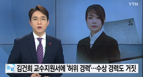 (写真=YTN)キム・ゴンヒ氏の詐称経歴を報じるニュース