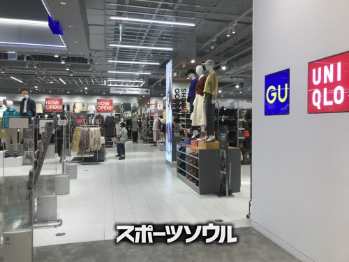 このGU店舗は、不買運動の影響で客足が遠のいた蚕室(チャムシル)1号店より、混み合っていた。店内にはユニクロの姉妹ブランドであることを知らせるように、ユニクロとGUが共同で企画した商品も提供されていた。