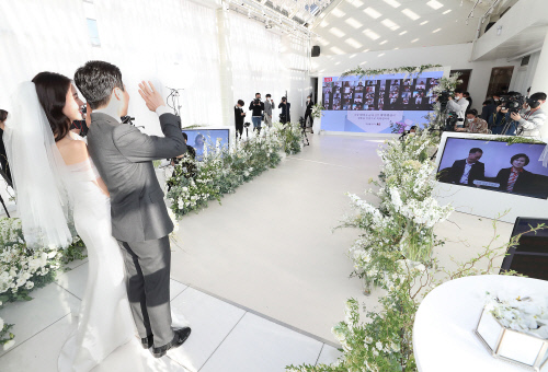 (写真提供=KT)結婚式をユーチューブ生放送で行う韓国の新郎新婦