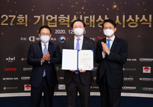 12月8日、ソウルの商工会議所で開かれた「企業革新大賞」で大韓航空が大統領賞を受賞した。