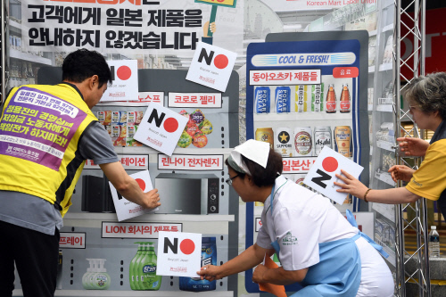 コンビニエンスストア、大手マートなど大型小売店が日本製品の“不買運動”に参加する。