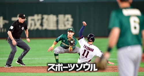 その後、韓国にも巻き返しのきっかけはあったが、代打で出場したカン・ベクホ(23、KTウィズ)が二塁打直後、喜び過ぎたあまりベースから足を離し、その隙を逃さなかった相手内野手によってタッチアウトとなった。結局、8回に救援登板したヤン・ヒョンジョン(34、KIAタイガース)も3点本塁打を打たれ、そのままひざまずいた。