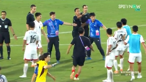この試合は北朝鮮選手の暴力的な行動が話題になっている。