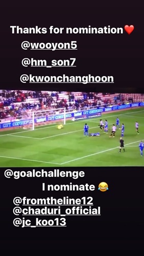 そんな中、ソン・フンミン(27・トッテナム)、クォン・チャンフン(25・フライブルク)、チョン・ウヨン(30・アル・サッド)から指名を受けたキ・ソンヨンも、3月23日に妻ハン・ヘジンのSNSを通じて“ゴールチャレンジ”に参加した。