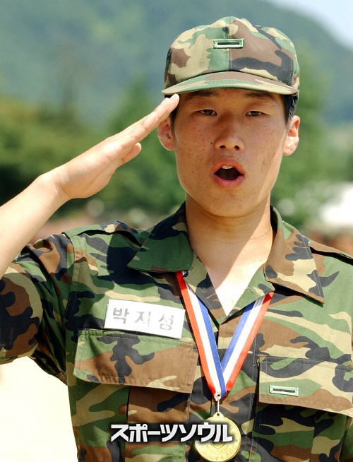 最近では20代中盤や後半にかけて訓練所に殺到する選手が多いが、当時のパク・チソンは22歳と若くして訓練を終えた。