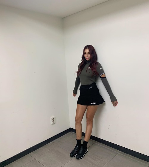 写真を見ると、ロングヘアを胸元まで垂らしたユ・ヒョンジュが壁に寄りかかり、カメラに向かってほほ笑んでいる。彼女の圧巻のスタイル際立つタイトなゴルフウェアは、ユ・ヒョンジュがキャプションで触れた通り、穴を開けたかのような左腕部分が特徴的だ。