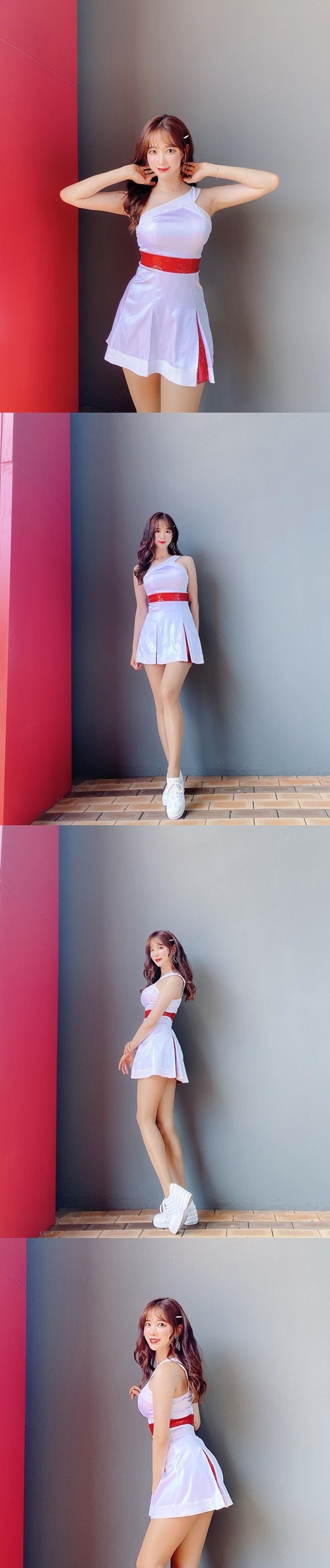 写真を見ると、チアリーディングの衣装を身にまとったキム・ハンナが華麗なポーズをカメラに披露している。タイトな衣装からも伝わるスタイルの良さはさることながら、スラリと伸びた美脚が見る者の目を引く。