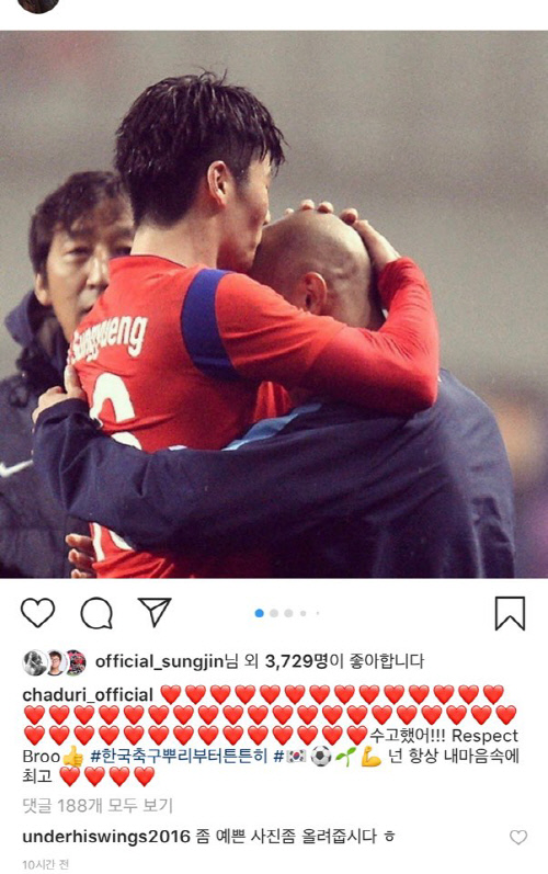 キ・ソンヨンの離脱が知られた後、キ・ソンヨンと親交の深い元サッカー韓国代表コーチのチャ・ドゥリもSNSに投稿。彼はキ・ソンヨンとの思い出が詰まった写真6枚を公開した。代表チームとセルティックFCでともに過ごした写真を上げたチャ・ドゥリは、「お疲れ様、あなたはいつも私の心の中の最高」とキ・ソンヨンに励ましのメッセージを残した。事実上の引退宣言をした後輩をいたわったのだ。
