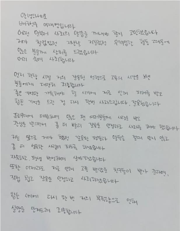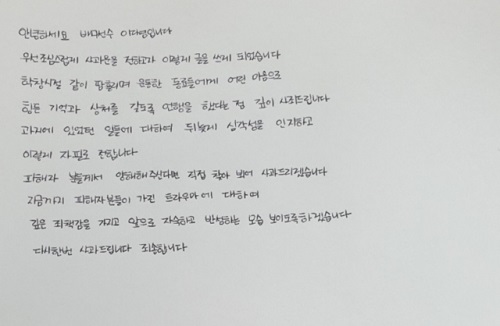 イ・ダヨンとイ・ジェヨンは直筆の謝罪文も公開した。