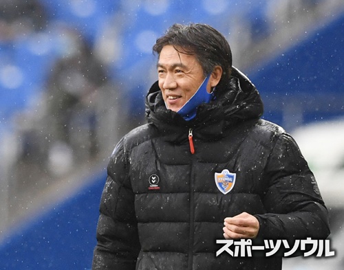 雨が激しく降り注ぐなかでも、テクニカルエリアで濡れながら選手に指示を飛ばした。監督として迎えたKリーグ・デビュー戦で見事勝利したホン・ミョンボ監督の話だ。