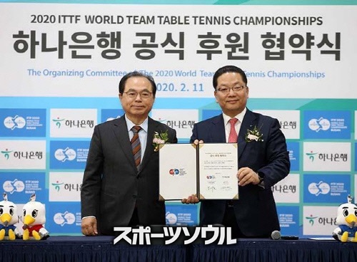 「2020ハナ銀行釜山世界卓球選手権大会」は、昨年3月21日に釜山BEXCOで開催する予定だった。同年2月11日にはハナ銀行とタイトルスポンサー協約式も行い、その場で大会組織委員長だったオ・ゴドン前釜山市長も「ハナ銀行が大会成功のために20億ウォンを後援することにした」と大々的に広報していた。