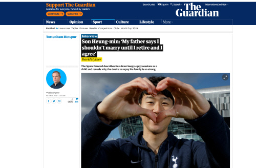 イングランド・プレミアリーグのトッテナムで活躍するソン・フンミンがイギリスの『ガーディアン』とのインタビューで、家族と韓国ファンに対する深い愛情を示した。