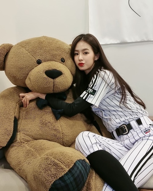写真を見ると、ストライプの入ったユニホームに身を包んだパク・キリャンがテディベアに抱きつき、カメラを見つめていることがわかる。その整ったビジュアルが印象的なのはさることながら、チアリーダーを務めているだけあってスラリとしたスタイルも見る者の目を引いた。
