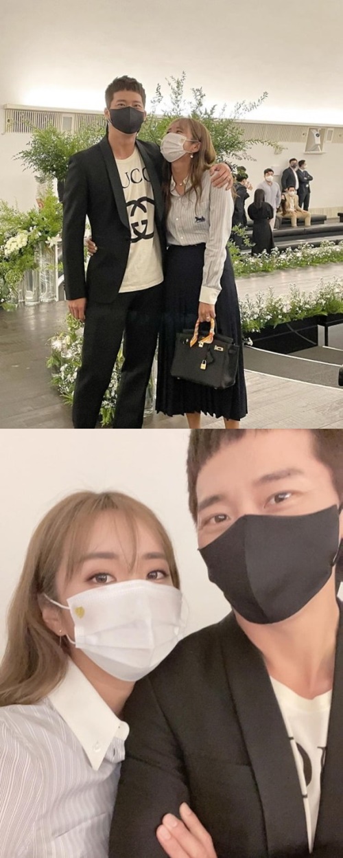 ともに投稿された写真には、式場を訪れたイ・ボミ夫妻の姿が。2人ともセミフォーマルスタイルではあるものの、数々のハイブランドで洗練されたゲストルックを完成させている。イ・ボミは親友の結婚が非常に嬉しいらしく、マスク越しでも明るい笑顔が伝わってくるようだ。
