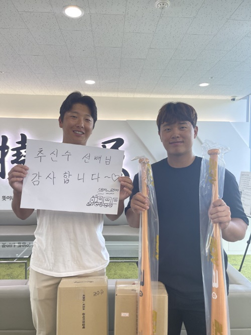 米メジャーリーグ(MLB)のアジア人通算最多本塁打記録を保有し、現在は韓国プロ野球KBOリーグでプレーするチュ・シンス(39、SSGランダース)が、球団の低年俸選手を対象に野球用品をプレゼントした。