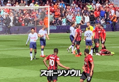 トッテナムの攻撃が進まない状況下でソン・フンミンは前半44分、ペナルティーエリア内への進入を試みるが、相手の二重、三重の防御の前に遭い、ボーンマスの相手選手を突き飛ばして、審判はその場でソン・フンミンに退場を指示した。