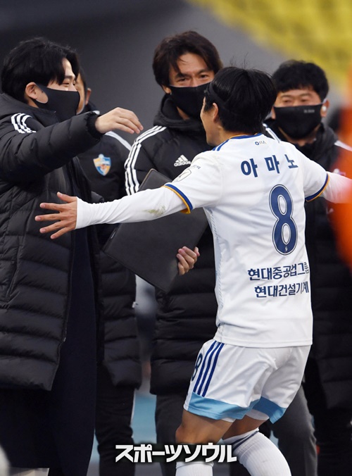 天野の得点が生まれたのは後半開始早々。後半1分、左サイドバックのDFソル・ヨンウ(22)が上げたクロスに反応すると、天野がこぼれ球を左足でボレーシュート。ボールはクロスバーに当たりゴールに吸い込まれ、Kリーグでの自身初得点とともに、蔚山現代の今季初得点となった。
