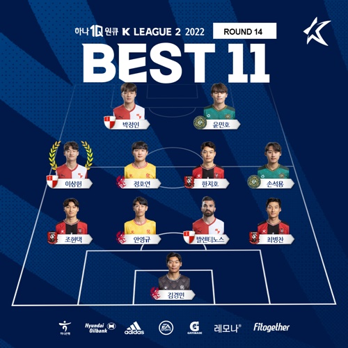 DF:チョ・ヒョンテク(富川FC 1995)、アン・ヨンギュ(光州FC)、ヴァレンティノス・シエリス(釜山アイパーク)、チェ・ビョンチャン(富川FC 1995)