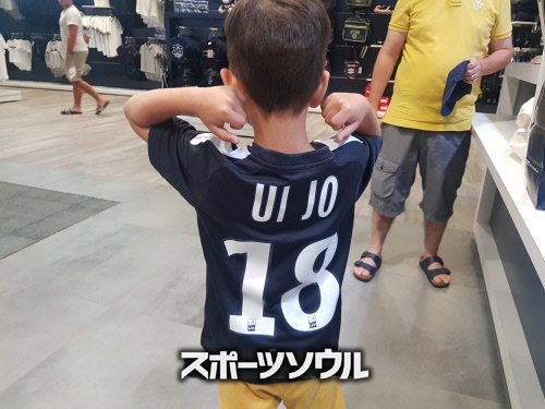 そんなボルドーで、背番号18番「UI JO」のユニホームを探すのは難しくない。