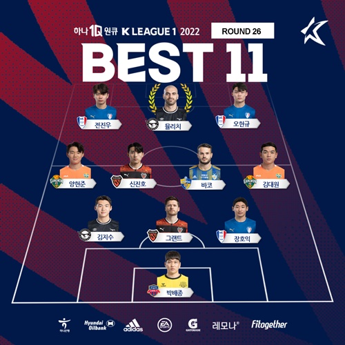 FW:チョン・ジヌ(水原三星ブルーウィングス)、フェイサル・ムリッチ(城南FC)、オ・ヒョンギュ(水原三星ブルーウィングス)