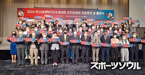 9月22日午前、釜山(プサン)広域市・海雲台(ヘウンデ)区のウェスティン朝鮮釜山ホテルで行われた「2024釜山世界卓球選手権大会組織委員会創立総会及び発足式」。