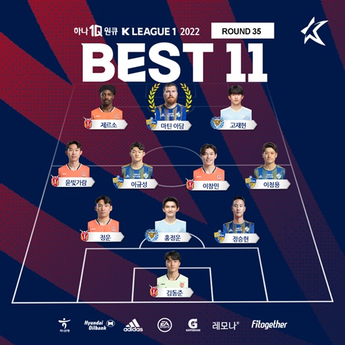 第35節ベストイレブンにはMVPのアダム、蔚山現代からPKの同点弾につながる相手のハンドを誘発したMFイ・チョンヨン(34)、逆転ゴールをアシストしたイ・ギュソンのほか、元サガン鳥栖、鹿島アントラーズのDFチョン・スンヒョン(28)が選出された。