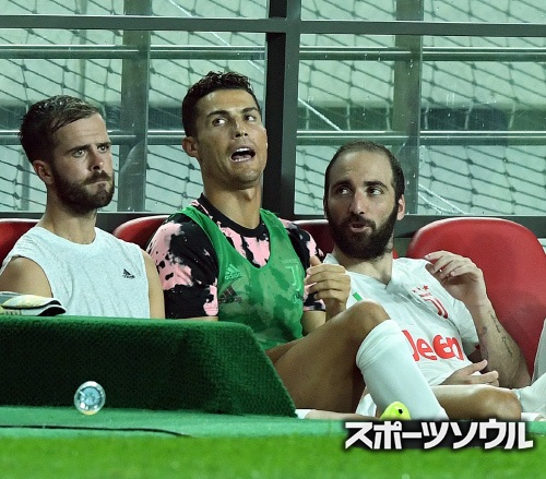 7月26日、韓国で行われたユベントス対チームKリーグの親善試合をベンチで見守るクリスティアーノ・ロナウド