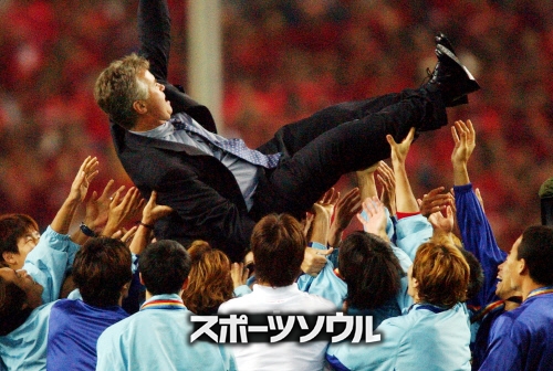 しかし、ヒディンク監督はすべての議論を跳ね返し、2002年4月から競技力を押し上げて、6月には太極戦士らとともに四強神話を書き下ろした。