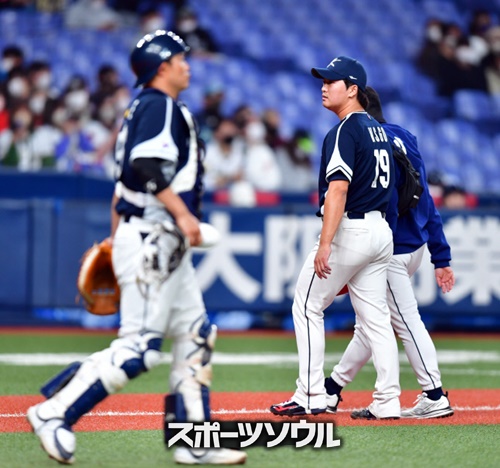 韓国代表はその後、キム・グァンヒョン(34、SSGランダース)、クァク・ビン(23、斗山ベアーズ)、ヤン・ヒョンジョン(35、KIAタイガース)を登板させ3~5回を無失点に抑えたが、6回に登板したチョン・チョルウォン(23、斗山ベアーズ)がキム・ハソンのミスで1失点した。8回には、回またぎで登板していたコ・ウソク(24、LGツインズ)が肩付近を痛め早期降板を強いられた。
