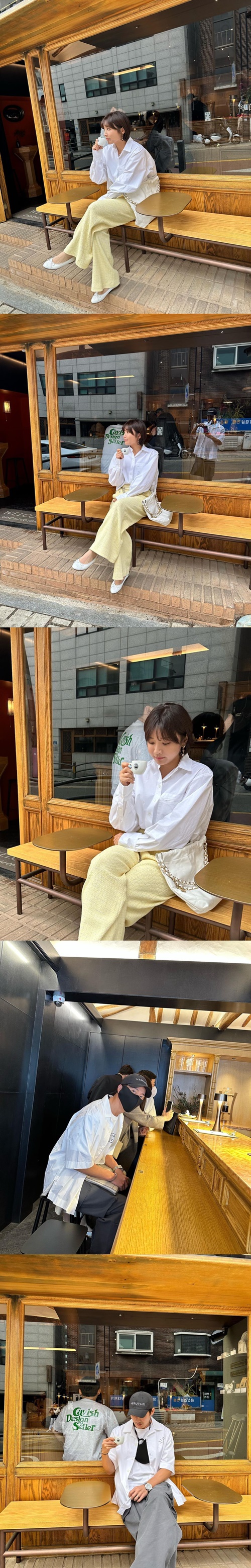 写真を見ると、ソウル市内にあるカフェでくつろぐイ・ボミの様子が写っている。春らしい色合いのコーディネートを着こなし、優雅にコーヒーを楽しむ姿はまさにモデルさながらだ。