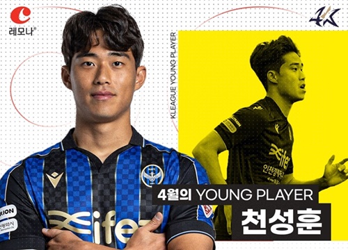 仁川(インチョン)ユナイテッドのFWチョン・ソンフン(22)が、2023年シーズン4月の「レモナ 今月のヤングプレーヤー賞」を受賞した。