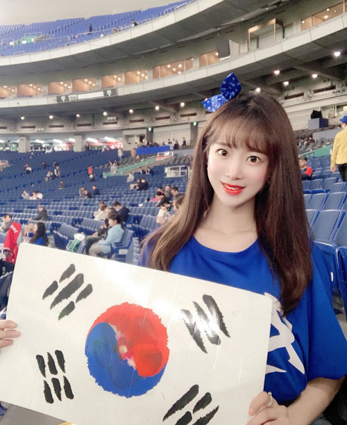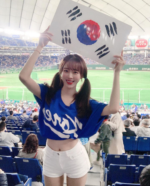 キム・ハンナは昨年行われたジャカルタ・アジア大会のときも、野球韓国代表チームの遠征応援に駆けつけた。