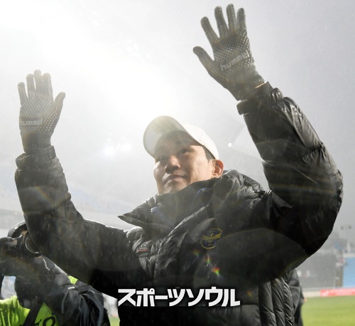 11月24日の尚州戦終了後、ファンに挨拶するユ・サンチョル監督