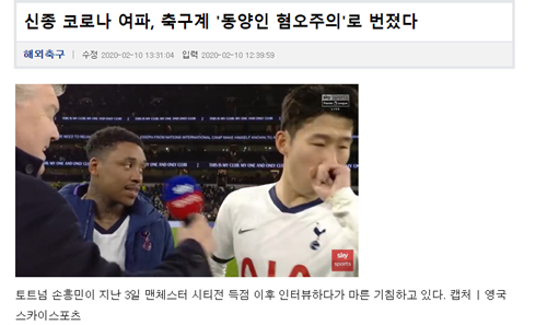 するとそのとき、インタビュアーのイギリス『スカイスポーツ』記者が大げさに驚くジェスチャーをしただけでなく、映像のコメントでも「ソン・フンミンが咳をした」などと、新型コロナウイルス感染症を想起させるかのような内容が流れた。
