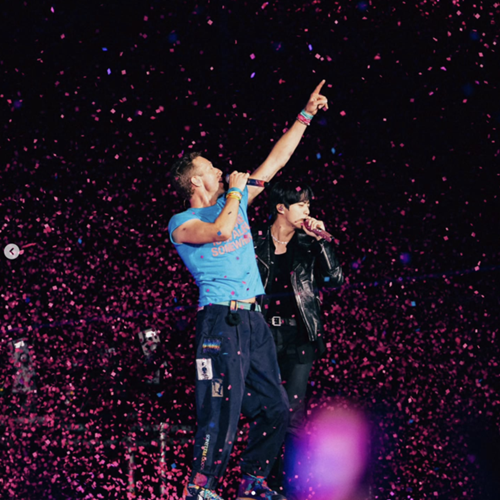 JINは2022年10月、Coldplayがアルゼンチン・ブエノスアイレスのリバープレート・スタジアムで行った公演にスペシャルゲストとして出演しており、2年6カ月ぶりに再び共演を果した。また、ColdplayとBTSがコラボした『My Universe』も熱唱。2人は手を取り合いながら観客に挨拶し、一緒に歌いながらキスをする場面も見せた。