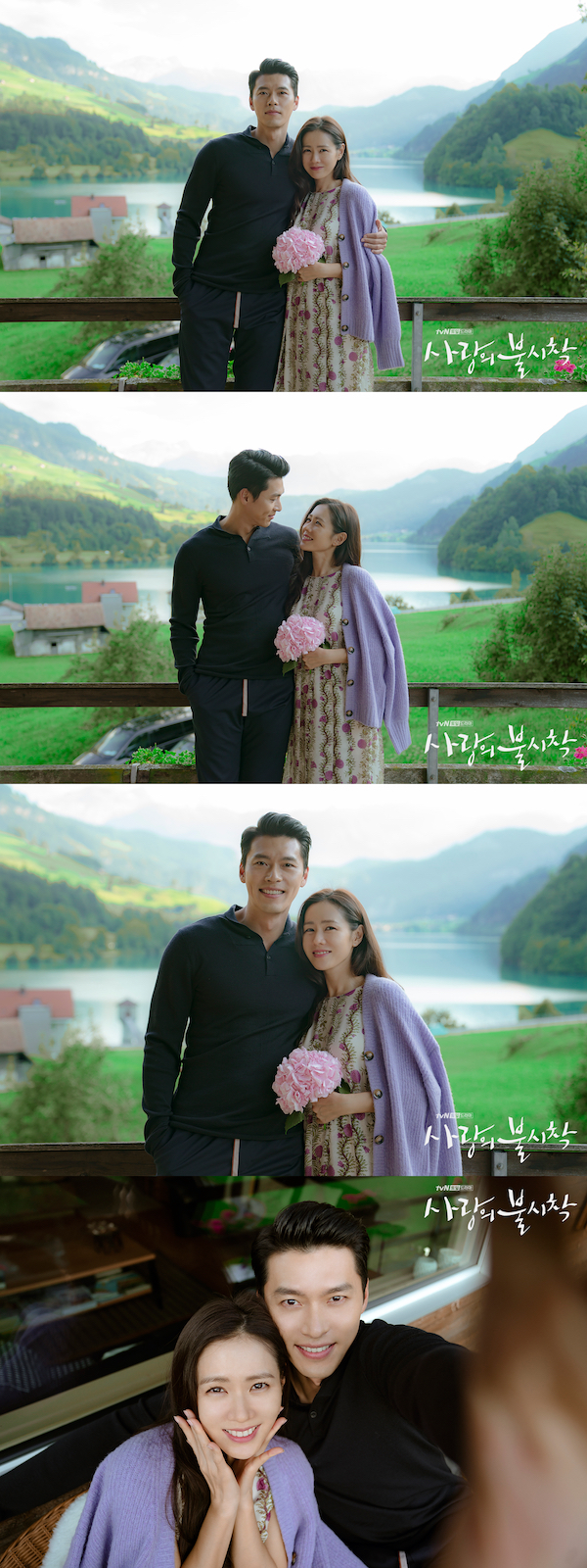その写真とは、主演俳優ヒョンビンとソン・イェジンがスイスの美しい風景を背景にポーズを取っているもの。
