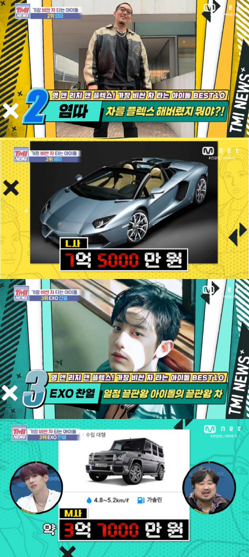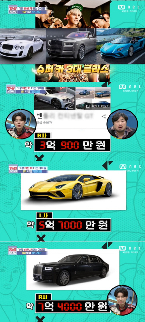 韓国Mnetで26日に放送されたバラエティ番組『TMI NEWS』では、「最も高価な車に乗るアイドルBEST10」が紹介され話題を呼んだ。