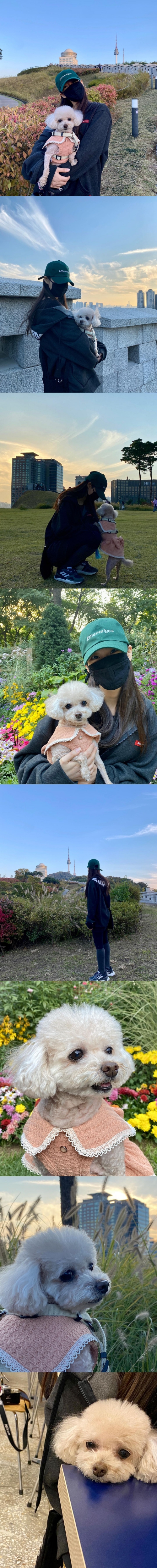 投稿された写真には、愛犬のヌビとともにソウル近郊を散歩するスンヨンの姿が写っている。