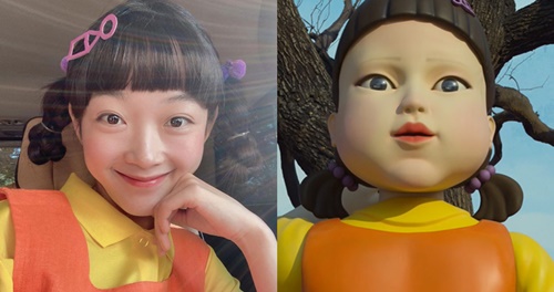 世界83カ国で1位になったNetflixオリジナルドラマ『イカゲーム』に出演した女優イ・ユミがヨンヒ人形に変身し、笑いを誘った。