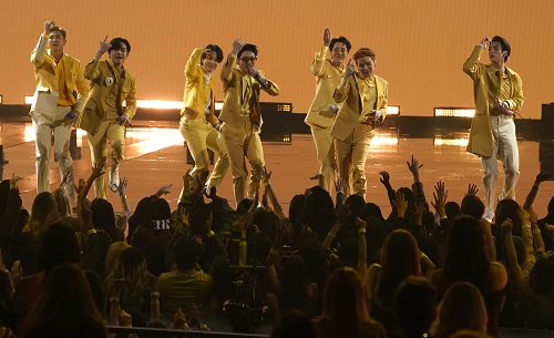 パフォーマーとして出席したBTSのステージも、世界の注目を集めた。BTSはコールドプレイと共に『My Universe』のライブ公演を行った。当初は人気女性ラッパーであるミーガン・ジー・スタリオンと共に『Butter』のステージも披露する予定だったが、ミーガン・ジー・スタリオン側の事情で不発となった。それでもBTSの7人は、ヒット曲『Butter』で愉快なステージを披露して授賞式を彩った。『Butter』のカラーである黄色の衣装で身を包んだ7人は、パワフルなダンスで世界的な授賞式を黄色一色に染めた。