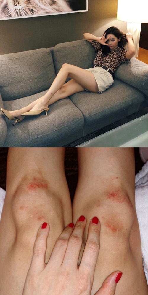 ステージ上の派手なパフォーマンスで多くのファンを魅了するWonder Girls出身の歌手ソンミが、痣だらけの膝を公開した。