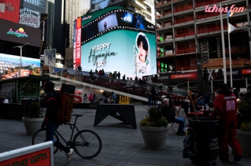 グローバルK-POPファンのプラットフォーム「Whosfan」で行われた「タイムズスクエアで誕生日を祝われるアイドルは誰?」の3月3週目投票で1位になったヒョンジンは、「Whosfan」の支援によってタイムズスクエアに誕生日記念広告が掲出された。