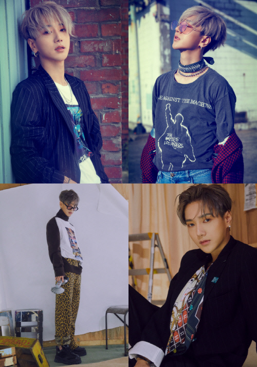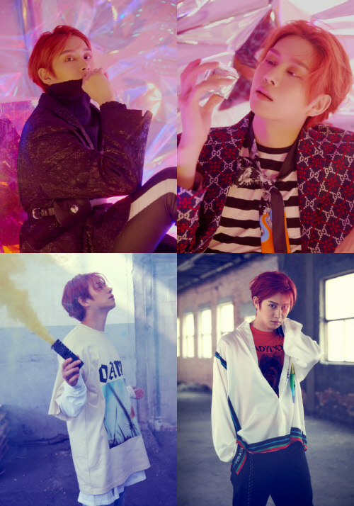 1つ目のコンセプトは「レトロ」だ。ホログラムを見つめているヒチョル、ヴィンテージパターンを背景にしたシンドン、フィルムカメラを手にしたイェソンまで、それぞれコンセプトに似合う小物を活用し、レトロな雰囲気を醸し出している。