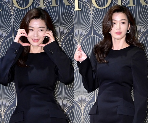 映画『猟奇的な彼女』やドラマ『星から来たあなた』で知られるチョン・ジヒョンは5月11日、ソウルのMEGABOX 聖水(ソンス)で開かれた海外ビューティーブランドのフィルムプレビューイベントフォトウォールで、頭からつま先までオールブラックのファッションで登場。