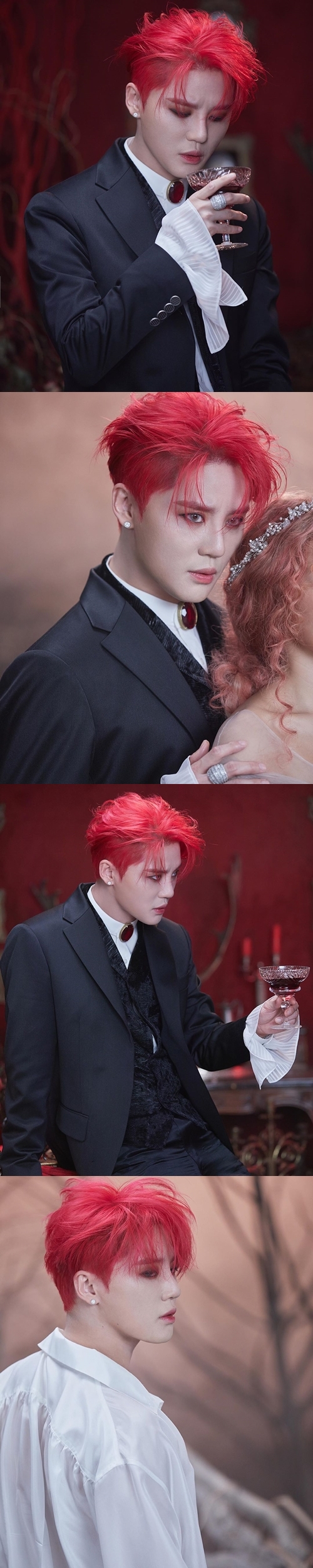 写真の中のジュンスは、真っ赤なヘアカラーとダークなメイクでミステリアスな雰囲気を醸し出している。彼ならではのドラキュラ伯爵の物語を予告し、舞台への期待感を高めた。