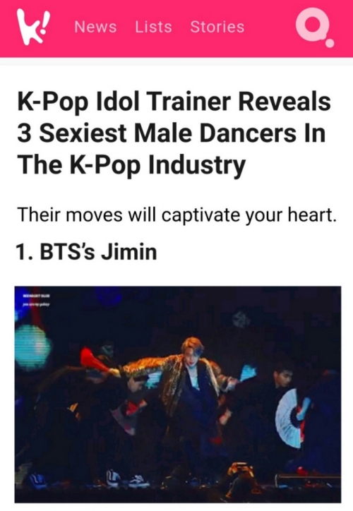 アメリカのK-POP専門メディア「Koreaboo」は1月4日、「もっともセクシーに踊る男性アイドルTOP3」を発表しJIMINを1位に選んだ。