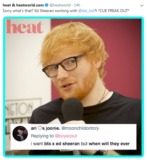 英国のシンガーソングライター、エド・シーラン(Ed Sheeran)が、K-POPグループBTS(防弾少年団)にラブコールを送った。