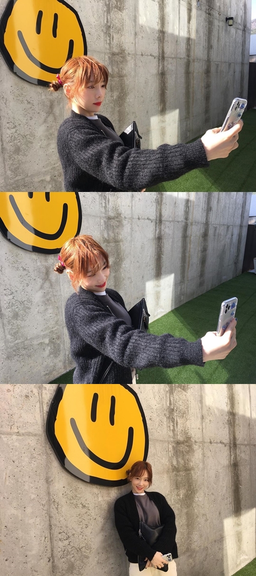 写真の中のテヨンは日差しの下で笑顔を浮かべ、スマートフォンのカメラを自身に向けている。耳元で髪を小さく一つにまとめたスタイルは、どこかあどけなさを感じさせる。陽の光に透けるような明るい髪色も印象的だ。