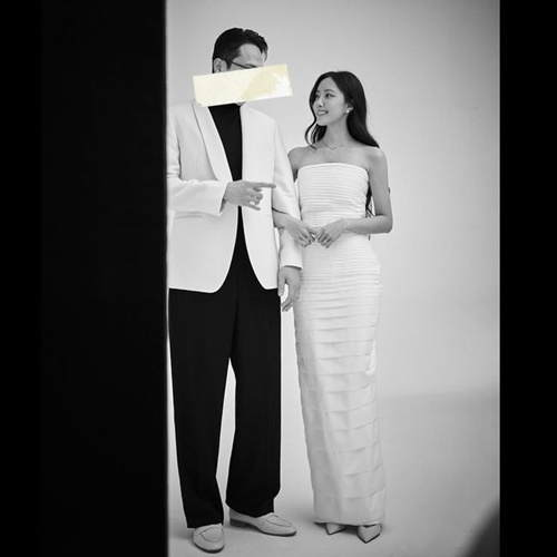 ガールズグループT-ARA出身のヒョミンが、婚約者とのウェディングフォトを公開した。