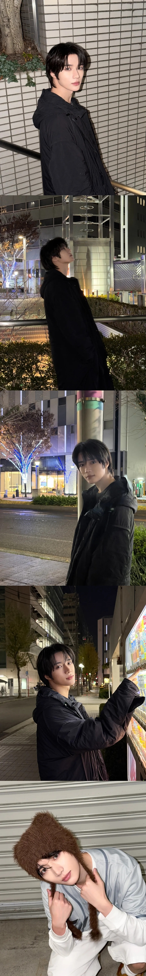 公開された写真には、名古屋の夜の街を散策するボムギュの姿が収められている。